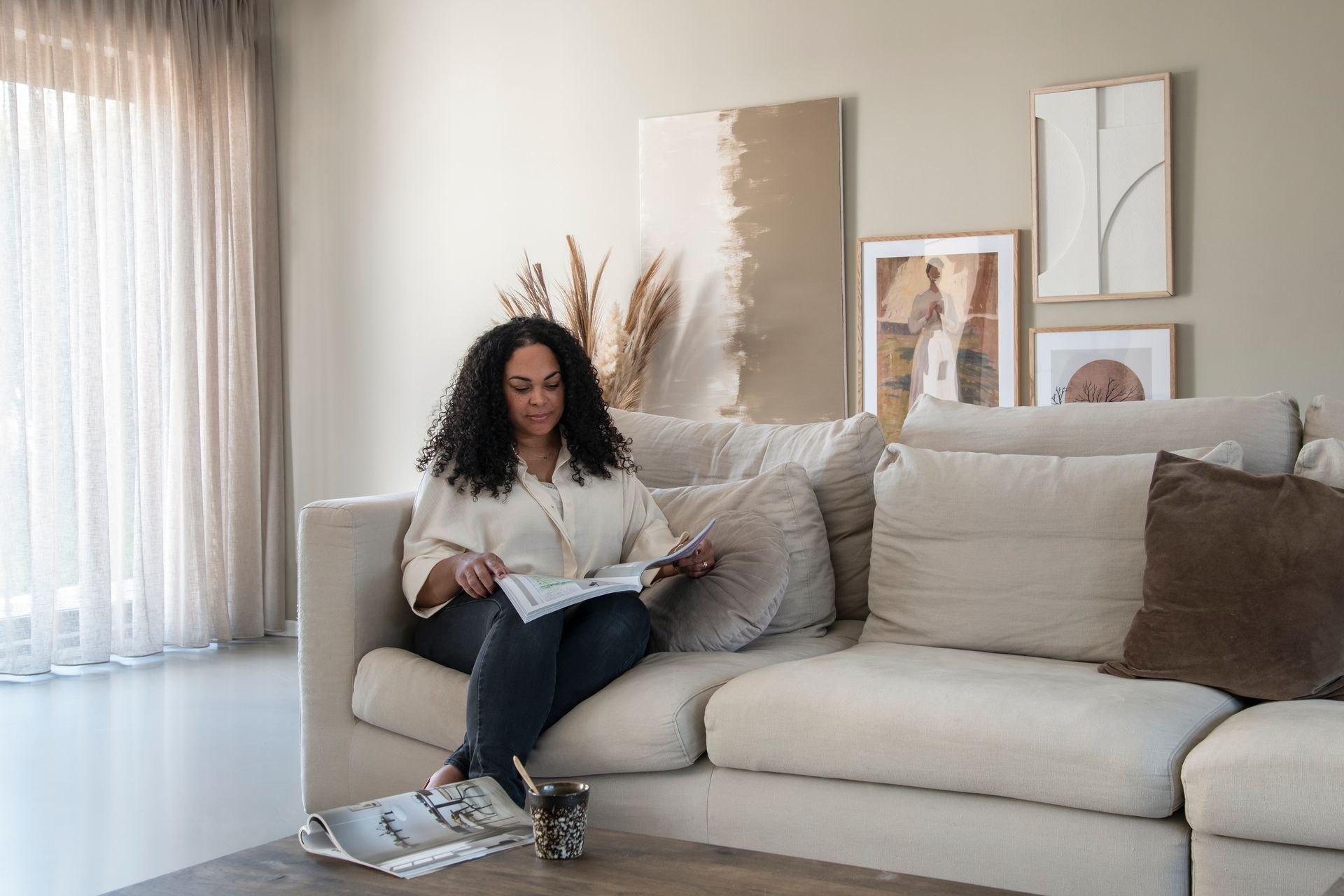 Voor de inrichting van de woning in Halsteren heeft de familie Langenberg de hulp ingeschakeld van interieurstyliste SunStyling. Geheel toevallig had de familie Langenberg in de vorige woning ook al raamdecoratie van INHUIS Plaza hangen. Samen met SunStyling heeft de familie gekozen voor zwarte bamboe jaloezieën in de keuken en woonkamer. De warme uitstraling van de bamboe jaloezie was hierin doorslaggevend!